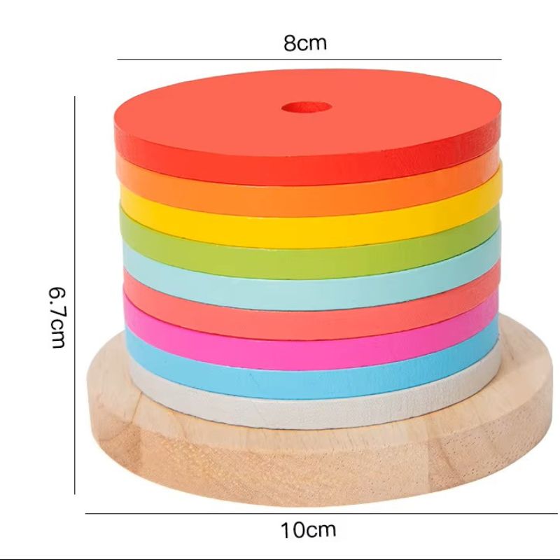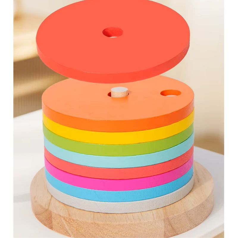 Ez a színes, fából készült szivárvány torony első ránézésre egyszerű építős játéknak tűnik… de valójában egy izgalmas logikai kihívás már 2 éves kortól. 🧠