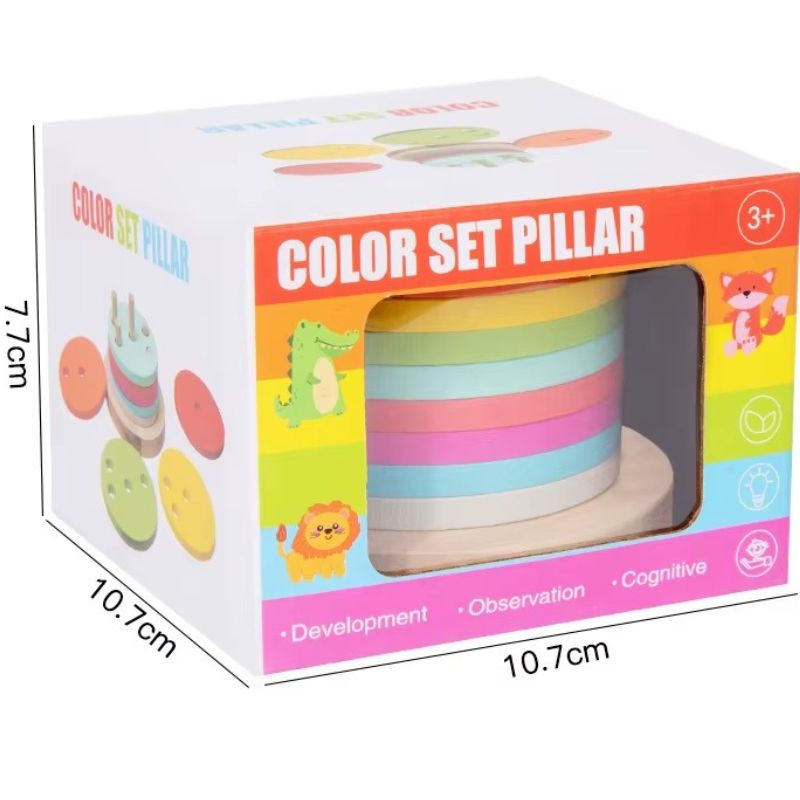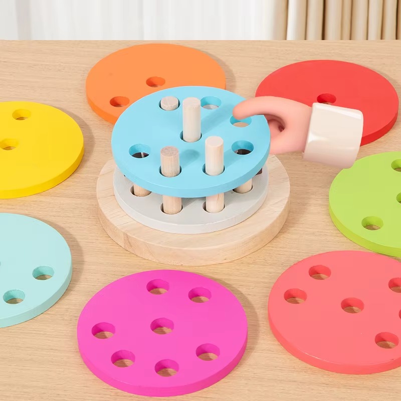 A játék különlegessége, hogy a színes korongokon eltérő számú és elhelyezkedésű lyuk található. A gyerek csak akkor tudja egymásra helyezni az elemeket, ha figyelembe veszi az alaplapon lévő oszlopok magasságát és elrendezését.