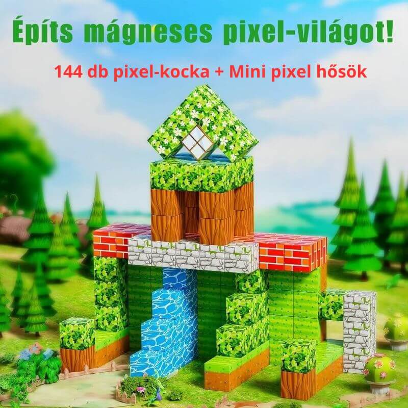 🎮 A Minecraft-világ megelevenedik a gyerekszobában – mágneses építőkockák – 144 db pixel-blokk + 4 mini hős 👾