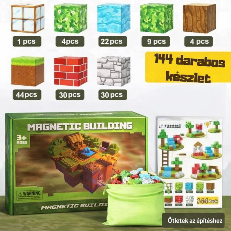 🧲Minecraft-stílusú mágneses építőkockák – kreatív építőjáték – 144 db